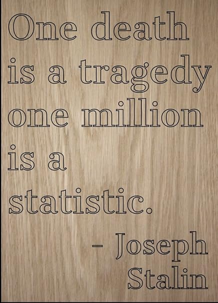 Even on such a small scale it is clear one death is a tragedy a million deaths is a statistic. A single death is a tragedy.